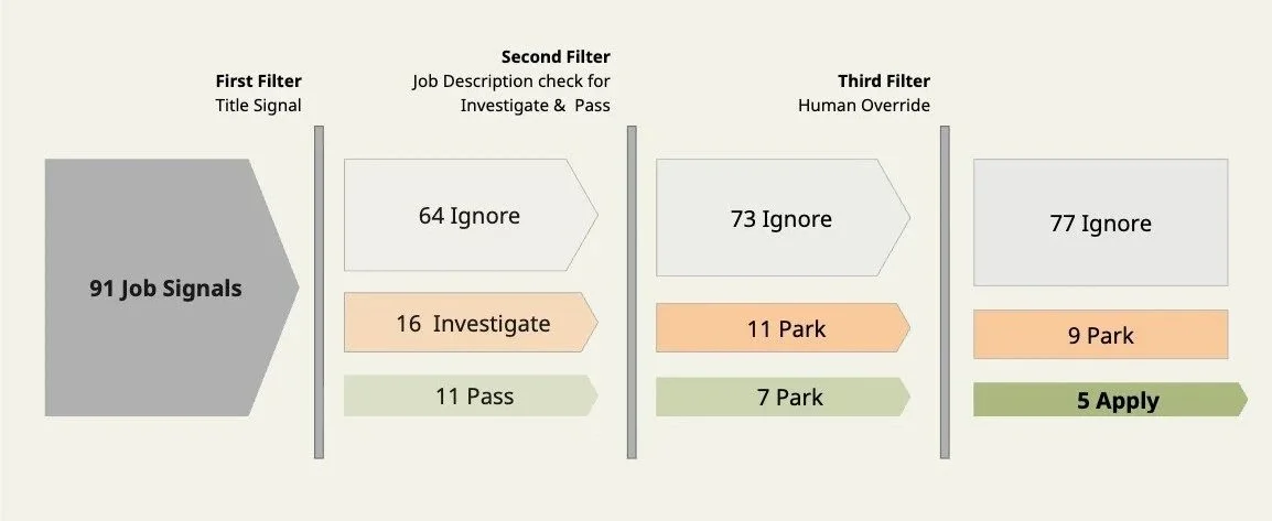 A few weeks ago, I wrote about designing a job search as a system rather than a manual search. The idea was simple: scanning through hundreds of roles is exhausting and mentally draining. The amount of information creates noise that clouds judgment. I believed that filtering the vacancies earlier would allow the energy to be spent on a few bets that are actually worth the attention.